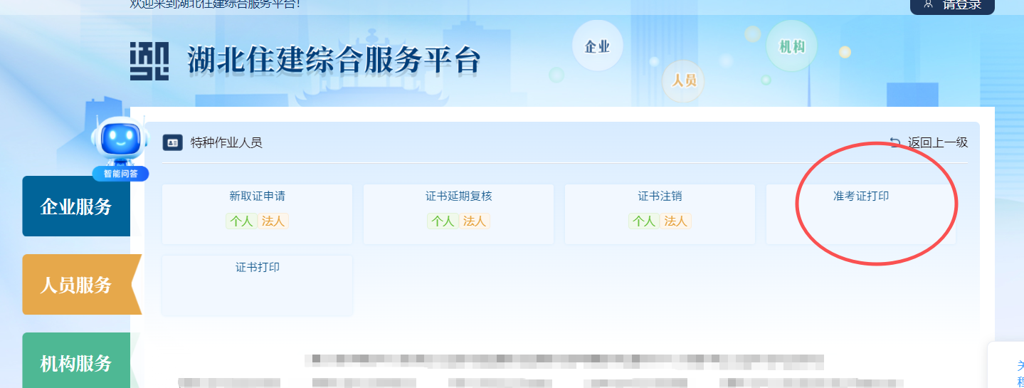湖北住建厅特种作业人员(住建厅特种工)准考证打印步骤